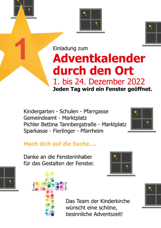 Auch heuer gestaltet das Team der Kinderkirche wieder einen Adventkalender durch den Ort.
