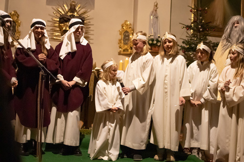 Diese kindgerecht gestaltete Mette wurde von einem engagierten Team inhaltlich vorbereitet und gestaltet. Ein besonderer Dank gilt an dieser Stelle Frau Gerlinde Hofer. Sie erklärte sich bereit ein Krippenspiel mit Kindern im Alter von 5 bis 15 Jahren einzustudieren. Besonders ansprechend für alle Besucher*innen war der Bezug von damals zu heute. In mühevoller Probenarbeit und mit viel Engagement und Fleiß wurde dieses bei der Kindermette aufgeführt: Ein besonderer Moment für alle.