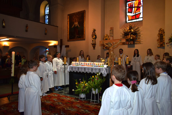 Pfarrer Maximilian ermunterte die Kinder bei seiner Predigt, auch wirklich an diesem Versprechen festzuhalten, so wie es die Jünger Jesu vor 2000 Jahren getan hatten: