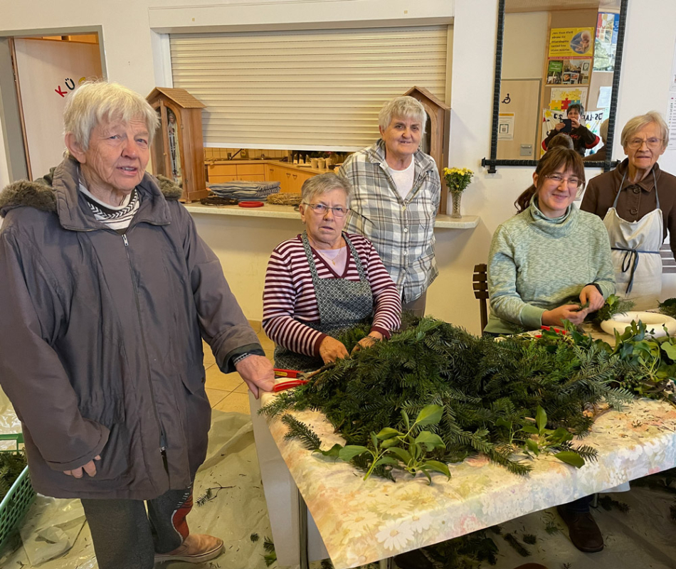 Das Adventkranzbinden der KFB hat schon Tradition und ist bei den Lembacher Frauen sehr beliebt. Das hat auch viele Gründe: Beim Kranzbinden verbringt man einen schönen Nachmittag in geselliger Runde. Bei guter Unterhaltung vergeht die Zeit im Flug und am Ende des Nachmittags waren 30 schöne Kränze gebunden. Zum Abschluss gab es noch Tee und Kuchen.