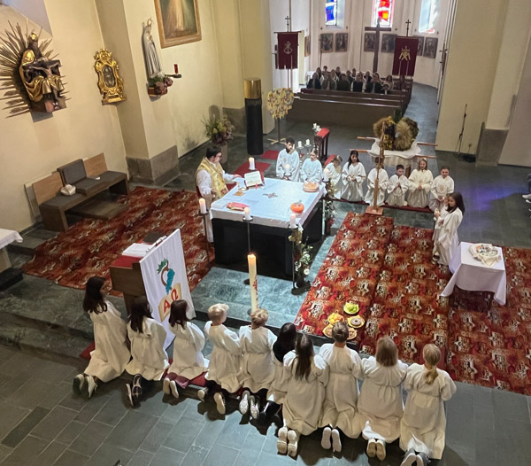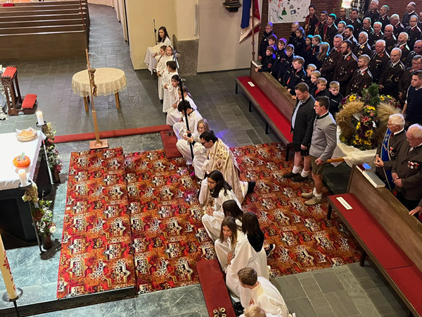 Lembach feierte Erntedank: Die Bäuerinnen hatten eine wunderschöne Erntekrone gebunden, die Kindergartenkinder hatten fleißig geübt, damit sie bei der Messe ihr Erntedanklied singen konnten, und am Sonntag, den 29. September 2024 feierten dann vielen Lembacherinnen und Lembacher, alle Vereine, Kirchenchor und Ministranten, und vor allem so viele Kinder mit ihren Eltern mit Pfarrer Maximilian den Festgottesdienst.