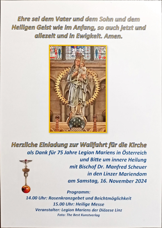 als Dank für 75 Jahre Legion Mariens in Österreich und Bitte um innere Heilung mit Bischof Dr. Manfred Scheuer in den Linzer Mariendom.