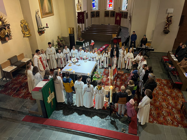 11 neue Ministranten, in Summe nun 31 Ministranten, darauf kann man stolz sein: die Ministranten, die Eltern, die Pfarrgemeinde und ganz besonders Pfarrer Maximilian - ist doch die Ministrantenarbeit die einzige Jugendarbeit in der Kirche, die wirklich gut funktioniert. Und so ist es gut und richtig, dass Pfarrer Maximilian bei der Amtseinführung der Ministranten John F. Kennedys Worte bei dessen Amtseinführung im Jahr 1961 zitierte: „Fragt nicht, was euer Land für euch tun kann – fragt, was ihr für euer Land tun könnt.“ Denn umgelegt auf die kirchliche Arbeit, ist es ja auch das Motto der Ministranten: Was können WIR für Jesus tun?