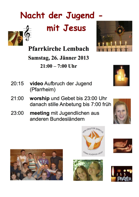 Jugend-Gebetsnacht Samstag, 26.Jänner 2013 21.00 Uhr