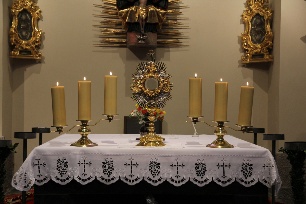 Bitte kommen sie in die Kirche, zu Jesus, der in der Monstranz gegenwärtig ist. Er erwartet uns, dass wir ihn anbeten, ihn bitten und für alles danken was er uns in seiner großen Liebe geschenkt hat.