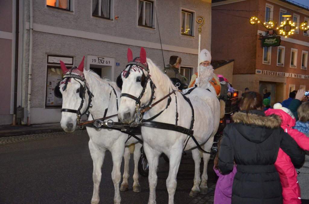 Auch heuer kam am 6. Dezember der Nikolaus, gefolgt von 2 braven Kramperln, wieder mit der Pferdekutsche am Marktplatz Lembach angefahren. Er gab den Kindern die Hand und redete mit Ihnen, schön umrahmt wurde die Veranstaltung von 4 Bläsern der Musikkapelle Lembach. Anschließend ging es weiter in die Pfarrkirche Lembach zur schön gestalteten Nikolausfeier. Danach verteilte der Nikolaus an jedes Kind ein gut gefülltes Nikolaussackerl und nahm teil am gemütlichen Beisammensein im Pfarrheim mit Punsch, Früchtetee, frischen Krapfen und Aufstrichbroten.