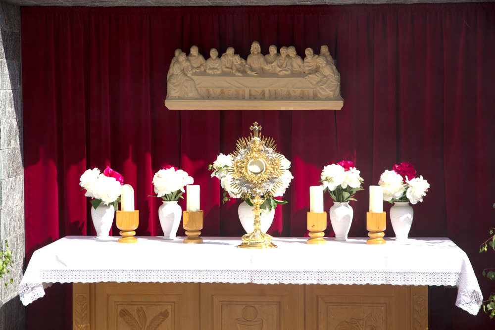 „Ich bin bei euch alle Tage, bis zum Ende der Welt!“ – Das hat uns Jesus bei seiner Himmelfahrt versprochen. Die Umzüge zu Fronleichnam mit der Gegenwart Jesu Christi in der Hostie, dem gewandelten Brot in der Monstranz, sind unser Bekenntnis zum Glauben an dieses Wunder.