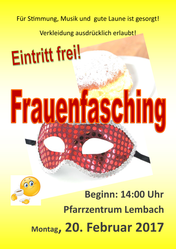 Die Frauen der Katholischen Frauenbewegung laden zum traditionellen Faschingsnachmittag sehr herzlich ein!