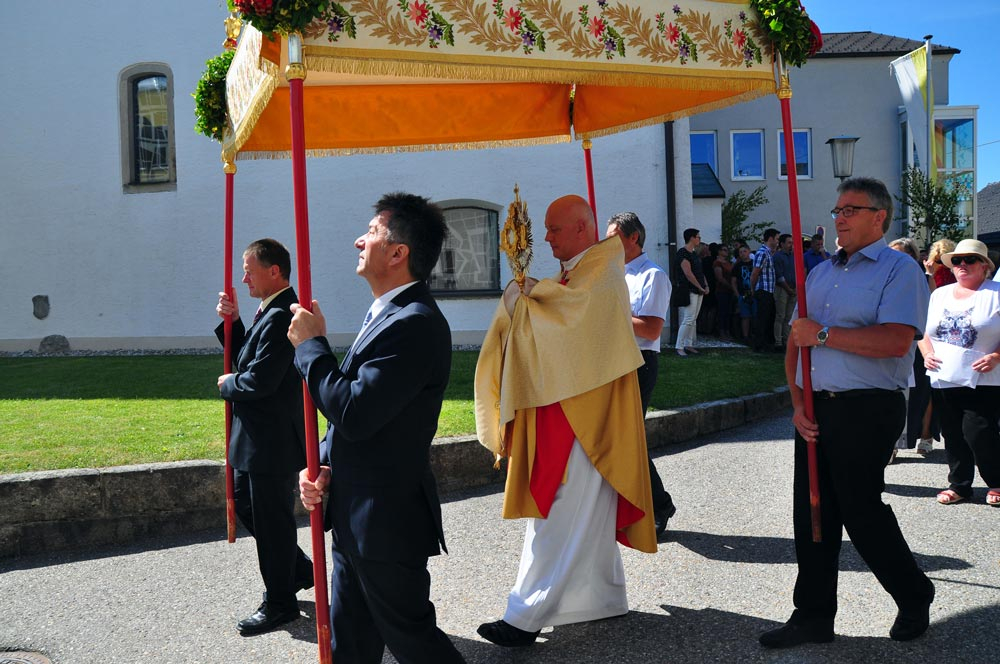 Am Gründonnerstag hat uns Jesus seine bleibende Gegenwart in Brot und Wein versprochen. Zu Fronleichnam bekennen wir unseren Glauben an dieses Versprechen und wir tragen Jesus in der Monstranz durch die Straßen unserer Heimatorte, um zu zeigen, dass der Glaube an Jesus Christus, an seine Gegenwart hier und jetzt und immerzu nicht innerhalb der Kirchenmauern bleiben darf. Jesus Christus ist mit uns unterwegs und wir sind aufgerufen, die frohe Botschaft des Glaubens in die Welt hinaus zu tragen.