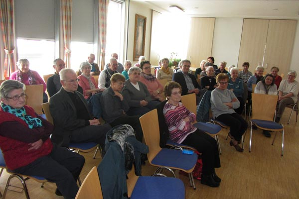 Pater Vinzenz erklärte uns in Wort und Bild die Ereignisse der Karwoche, wie sie der Evangelist Markus uns überlieferte, und zeigte uns anhand aktueller Fotos und Modellaufnahmen die Schauplätze in Jerusalem.