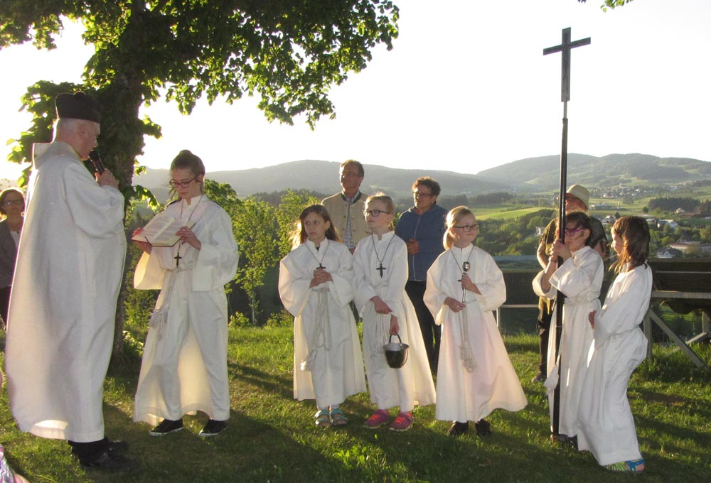Beim alljährlichen Flursegen segnete Pfarrer Kasimir wieder vom Mühlholz aus die Wiesen und Felder rund um Lembach, und bei der anschließenden Bittprozession baten wir um Regen und um den Segen Gottes für unsere Ernte.