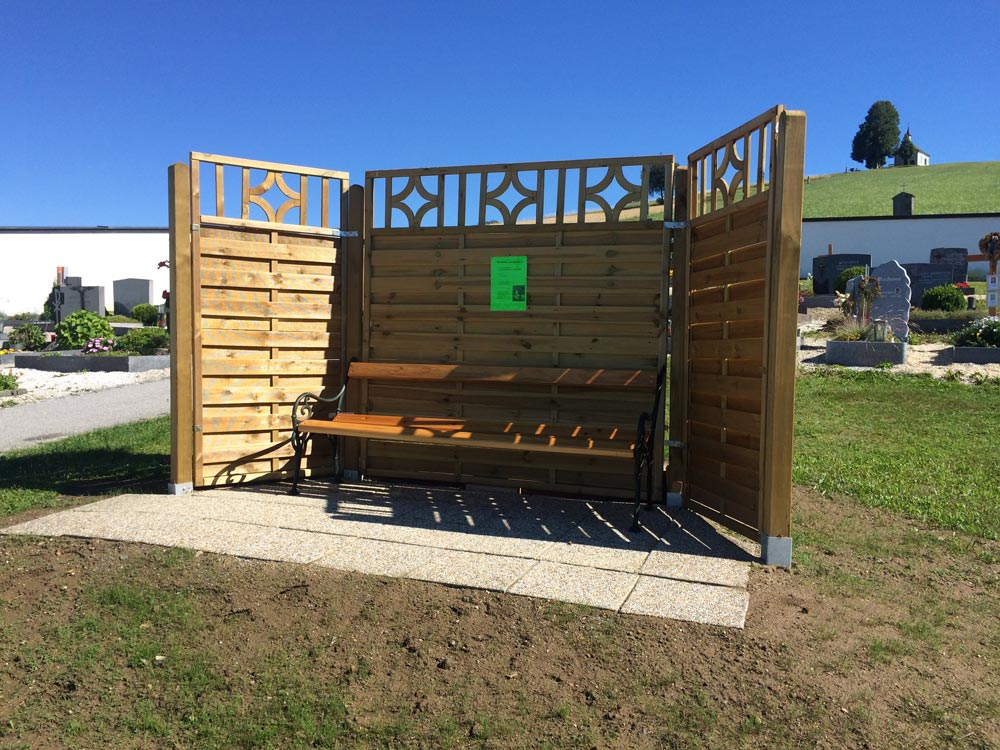 Auf Wunsch vieler Friedhofbesucher wurde nun dieser leere Platz neu gestaltet. Josef Leitenmüller errichtete eine kleine „Ruheoase“, einen Ort zum Innehalten, zum Ausruhen und mit einem schönen Ausblick auf den Markt.