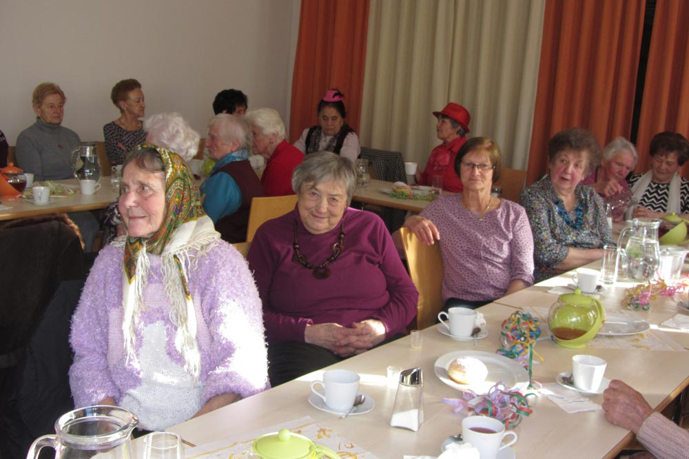 Zufällig feierte auch Pfarrer Kasimir –übrigens der einzige mutige Mann in dieser illustren Runde- Geburtstag. Wollen wir hoffen, dass er seine Dankschreiben richtig zuordnen konnte! Allerding bedauerte er sehr, dass er keine Kuh hat, so wie der Pfarrer in dem Lied, das der Faschingschor vortrug. Die musikalische Gestaltung hatte übrigens wieder das Lembacher Palastorchester übernommen. Sie versetzten uns mit ihren Oldies zurück in die Zeit unserer Jugend. Das Mitsingen scheiterte aber meistens daran, dass wir nur den Text der ersten Strophe noch wussten!