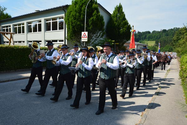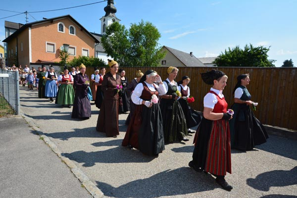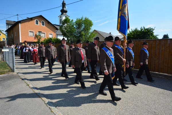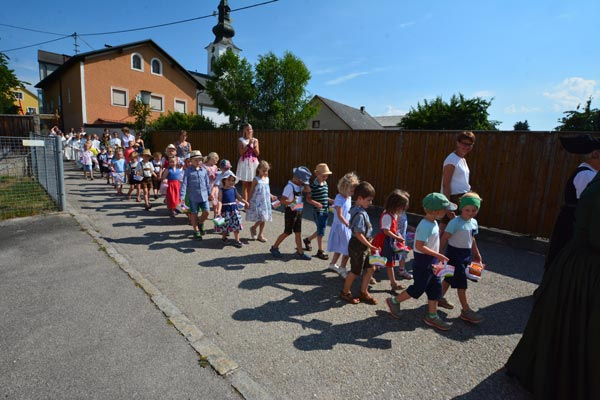 Viele haben Jesus begleitet: Musikkapelle, Feuerwehr, Kameradschaftsbund, Goldhaubenfrauen, Kindergartenkinder und Erstkommunionkinder, Kirchenchor und Ministranten.