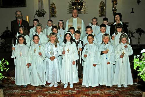 In den vorangegangenen Wochen hatten sich die Kinder auf dieses große Fest gut vorbereitet: Pfarrer Kasimir führte sie in den Vorbereitungsstunden auf den Empfang des Bußsakramentes und auf den Empfang der ersten Heiligen Kommunion hin.