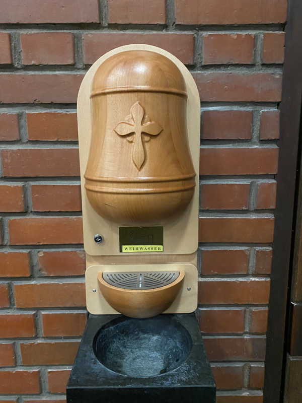In Zeiten wie diesen ist beides wichtig: Weihwasser und Desinfektion. Seit ein paar Tagen sind nun bei den zwei Haupteingängen zur Kirche automatische Weihwasserspender angebracht. Kontaktlos und völlig hygienisch kann man nun wieder beim Betreten der Kirche Weihwasser nehmen und wir erinnern uns wieder bewusst an unsere Taufe: