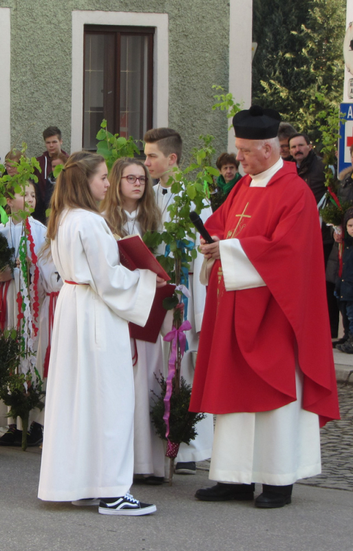 Die Palmweihe ist bei jeder dieser Hl. Messen in der Pfarrkirche.