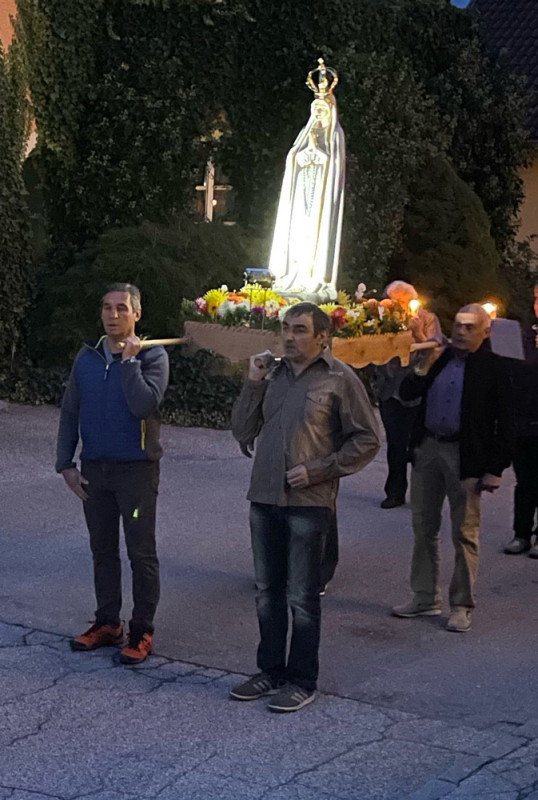 Dass das Vertrauen in den Schutz und die Fürsorge der Gottesmutter Maria groß ist, bewiesen die vielen Lembacherinnen und Lembacher, die zu dieser Fatimafeier kamen. Und sie alle begleiteten die Gottemutter bei der anschließenden Lichterprozession rund um die Kirche mit ihrem Gebet und mit dem Fatimalied „Ave, ave, ave Maria!“