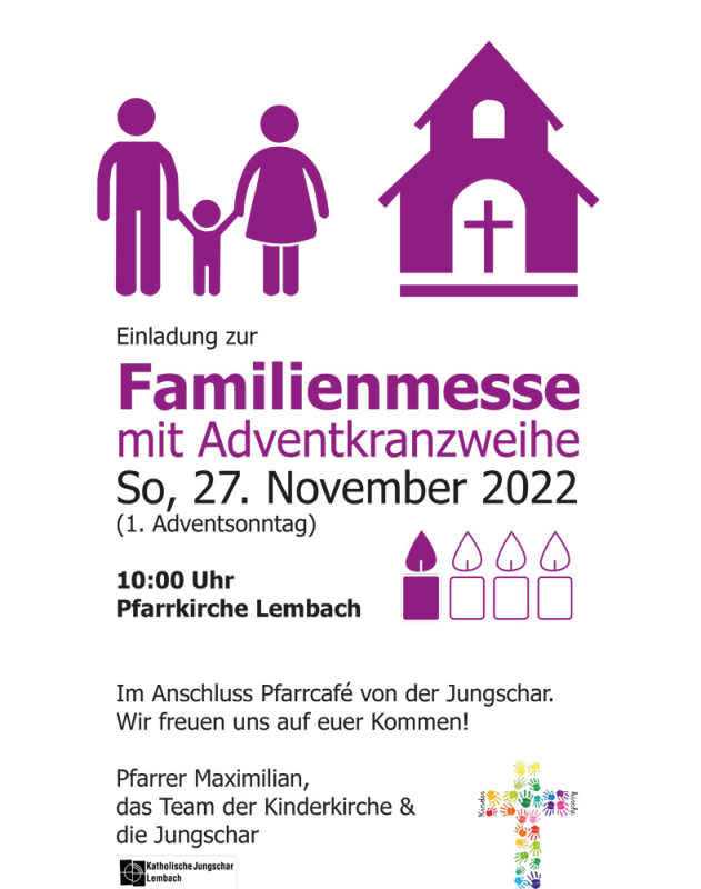 Pfarrer Maximilian, das Team der Kinderkirche und die Jungschar laden recht herzlich ein zur