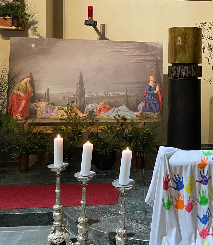 Wir denken an die einsamen Stunden Jesu am Ölberg - allein, von allen verlassen in Todesangst in der Nacht vor seinem Tod.