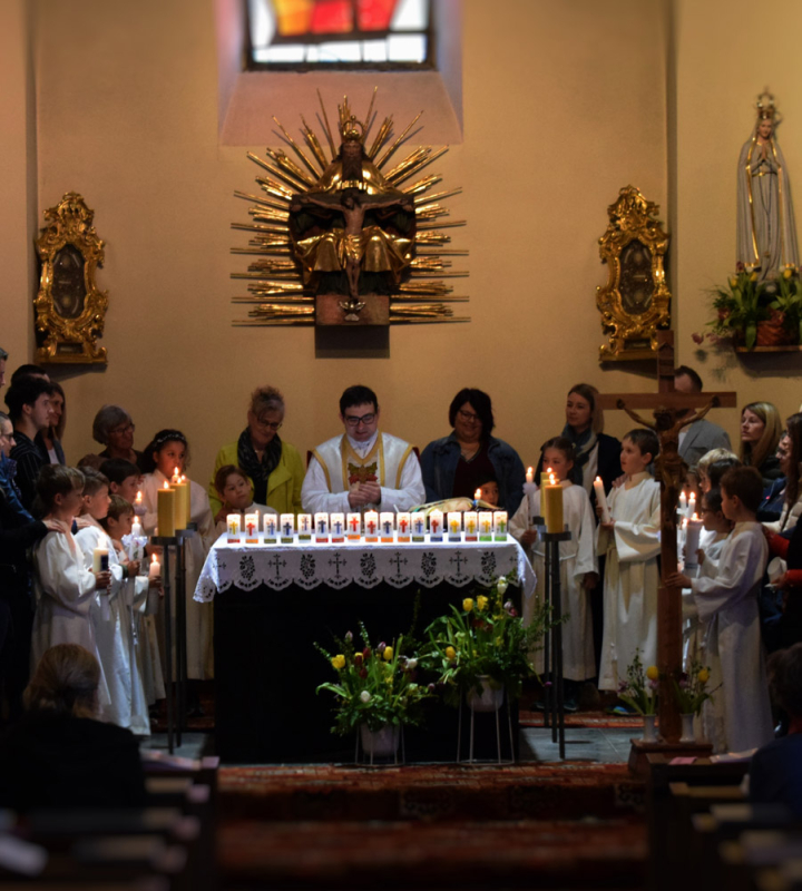 Denn dieser Gottesdienst war ein wichtiger Meilenstein bei der Vorbereitung auf das große Fest der Erstkommunion: An diesem Tag erneuerten die Kinder ihr Taufversprechen, das die Eltern und Paten bei der Taufe für sie gesprochen hatten. In ihren weißen Kleidern antworteten die Kinder laut und mit Begeisterung auf die grundlegenden Glaubensfragen: