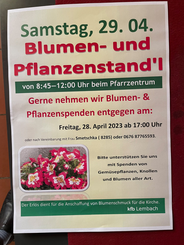 Schon seit vielen Jahren gibt es den Blumenflohmarkt der kfb in Lembach. Mit dieser Aktion bereiten die Frauen der Katholischen Frauenbewegung viel Freude: