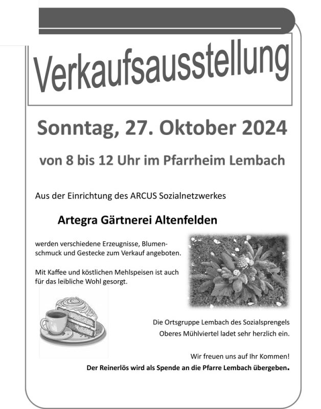 Der Reinerlös wird als Spende an die Pfarre Lembach übergeben.