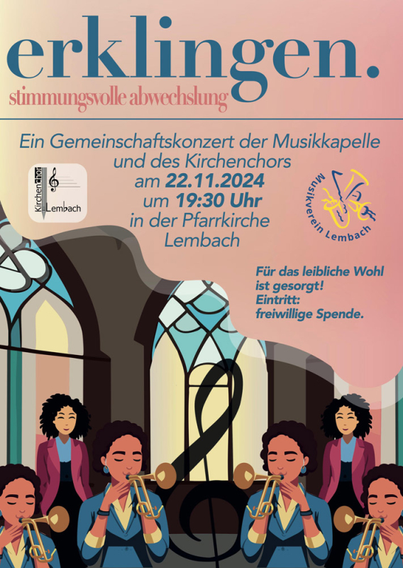 Wir laden sehr herzlich zum Gemeinschaftskonzert des Musikvereins und des Kirchenchores Lembach ein.