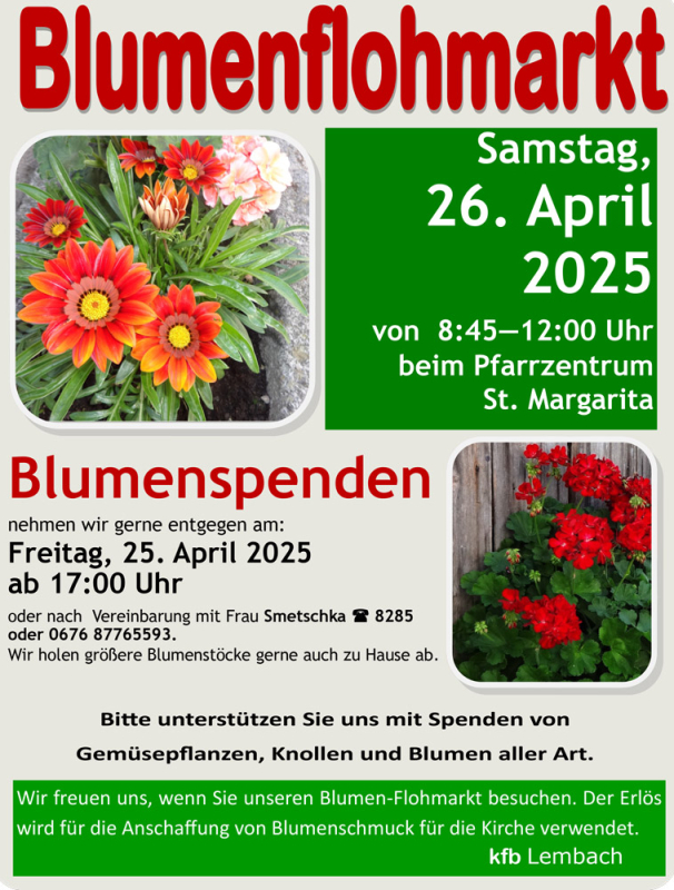 Der Erlös aus dem Blumenflohmarkt wird für die Anschaffung von Blumenschmuck für die Kirche verwendet.