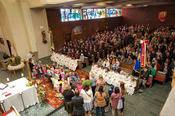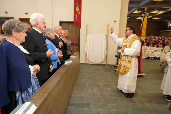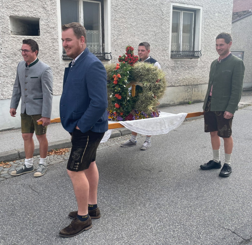 Pfarrer Maximilian, die große Ministrantenschar und der Kirchenchor gaben dem Gottesdienst einen festlichen Rahmen, die Kindergartenkinder, alle Vereine und die Pfarrbevölkerung feierten mit. Es war schön, dass an diesem Festtag die Kirche bis auf den letzten Platz gefüllt war und alle kräftig mitbeteten und mitsangen bis zum Schlusslied „Großer Gott, wir loben dich“, als Dank gegenüber Gott, der uns in diesem Jahr wieder so reich beschenkt hat - mit der Ernte des Jahres und mit der Ernte des (Ehe)Lebens.