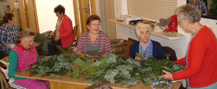 Einen ganzen Nachmittag lang arbeiteten die Frauen für einen guten Zweck, wird doch der Erlös aus dem Verkauf der KrÁ¤nze für wohltÁ¤tige Zwecke gespendet. Für die Frauen war es ein geselliger Nachmittag, der bei Tee und Krapfen gemütlich ausklang.