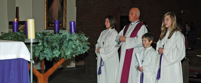 Pfarrer Kasimir segnet den Adventkranz in der Kirche...