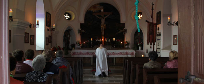 Die Mühlholzkapelle, ein weithin sichtbares Wahrzeichen Lembachs, stellt ein Verbindungsglied zwischen den wirtschaftlichen und religiösen Interessen des Marktes Lembach dar: Sie wurde von Alois Johanniter, einem sehr einflussreichen und wohlhabenden Leinenweber aus Lembach aus Dankbarkeit für die Errettung aus der Donau nach einem Schiffsunglück erbaut. Über diese Entstehungsgeschichte informierten Karl Ensbrunner und Hans Lindorfer nach der Maiandacht.