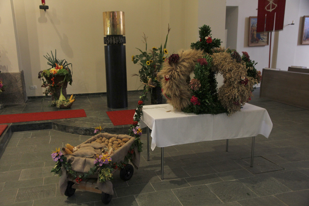 Wir bedanken uns bei allen, die beim Erntedankfest mitgefeiert und Gott für seinen Segen gedankt haben. Besonders bedanken wir uns bei der Musikkapelle, bei der Feuerwehr, beim Kameradschaftsbund und bei den Goldhaubenfrauen, bei den Kindergartenkindern, bei den Jungscharkindern, beim Kirchenchor und bei den Ministranten. Durch ihr Mitfeiern bekam der Festgottesdienst einen ganz besonders feierlichen Rahmen! Ein herzliches „Vergelt’s Gott!“ auch an Pfarrer Kasimir, der die Messe so feierlich zelebriert hat und der uns immer wieder daran erinnert, Gott für seine Güte und für seinen Segen zu danken!