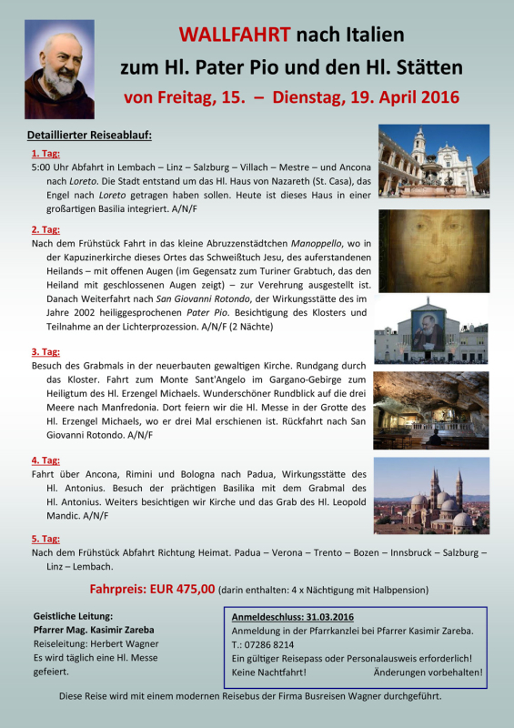 Nehmen Sie sich Zeit, eine Wallfahrt ist eine Investition in die Zukunft, gibt uns Kraft und stärkt uns im Alltag!