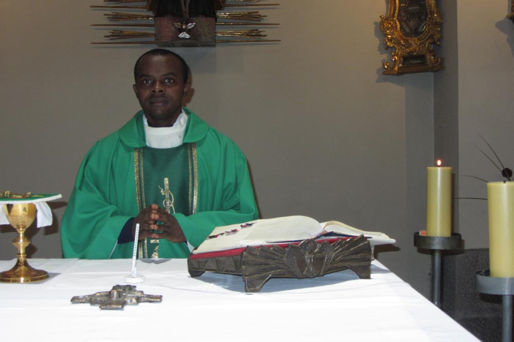 Herr Bonaventure ist bis Mitte September als Urlaubsvertretung von Pfarrer Kasimir in unserer Pfarre. Er stammt aus Nachi in Nigeria und lebt jetzt in Rom, wo er studiert.