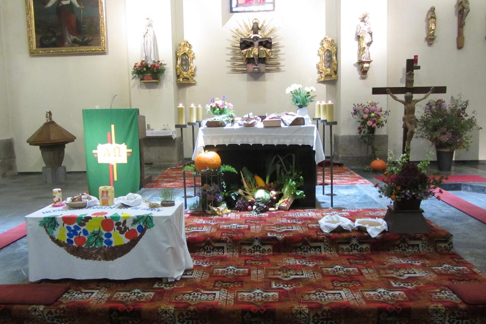 In diesem Gotteshaus beten wir um das Gedeihen der Feldfrüchte und um den Segen für unsere Arbeit. Du hast die Saat, die wir in die Erde gelegt haben, gesegnet. Heute bringen wir die Früchte und legen sie voll Dankbarkeit vor den Altar.