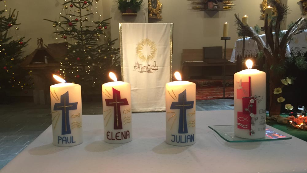 Wir danken Gott, denn durch die Taufe sind diese Kinder Kinder Gottes geworden. Als Zeichen dafür, dass Gott im Leben dieser Kinder Platz finden kann, wurden von den Eltern Kerzen entzündet. Wir wünschen uns, dass dieses Licht nicht erlischt und dass diese Kinder dieses Licht zu anderen Menschen tragen.