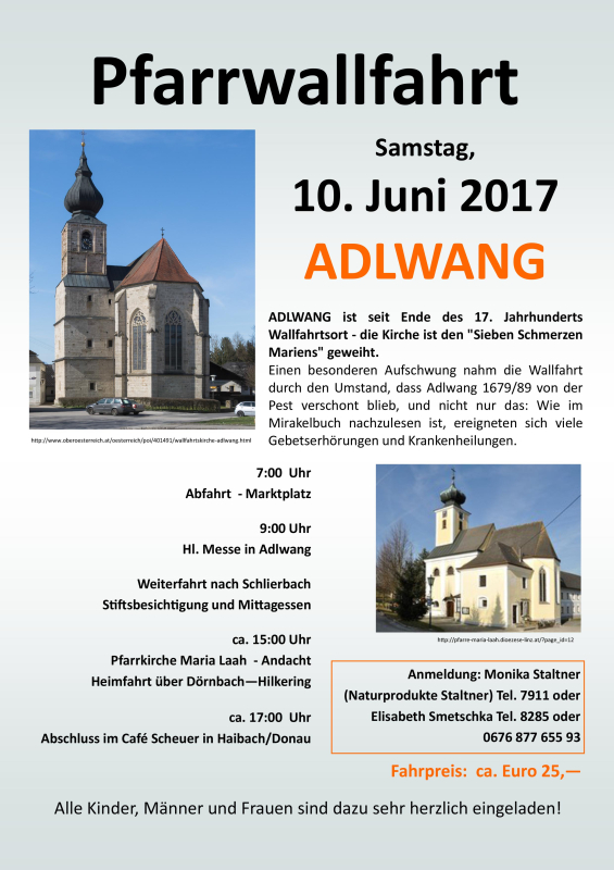 Wir laden alle Frauen, Männer und Kinder zu dieser Wallfahrt recht herzlich ein!
